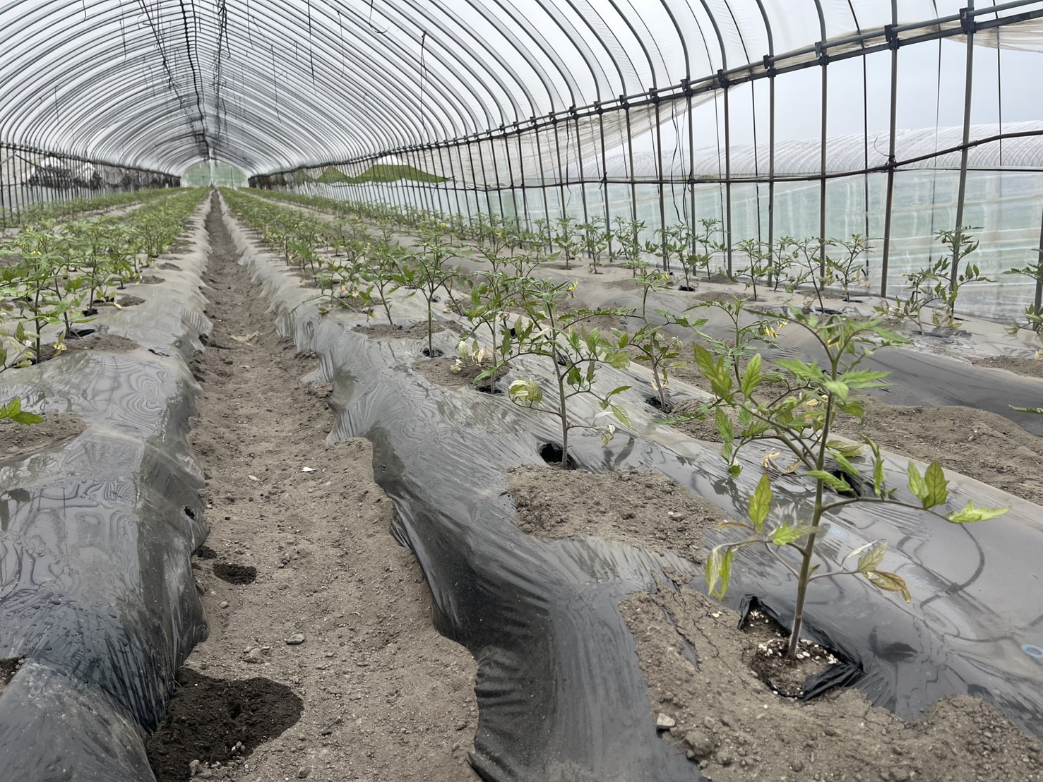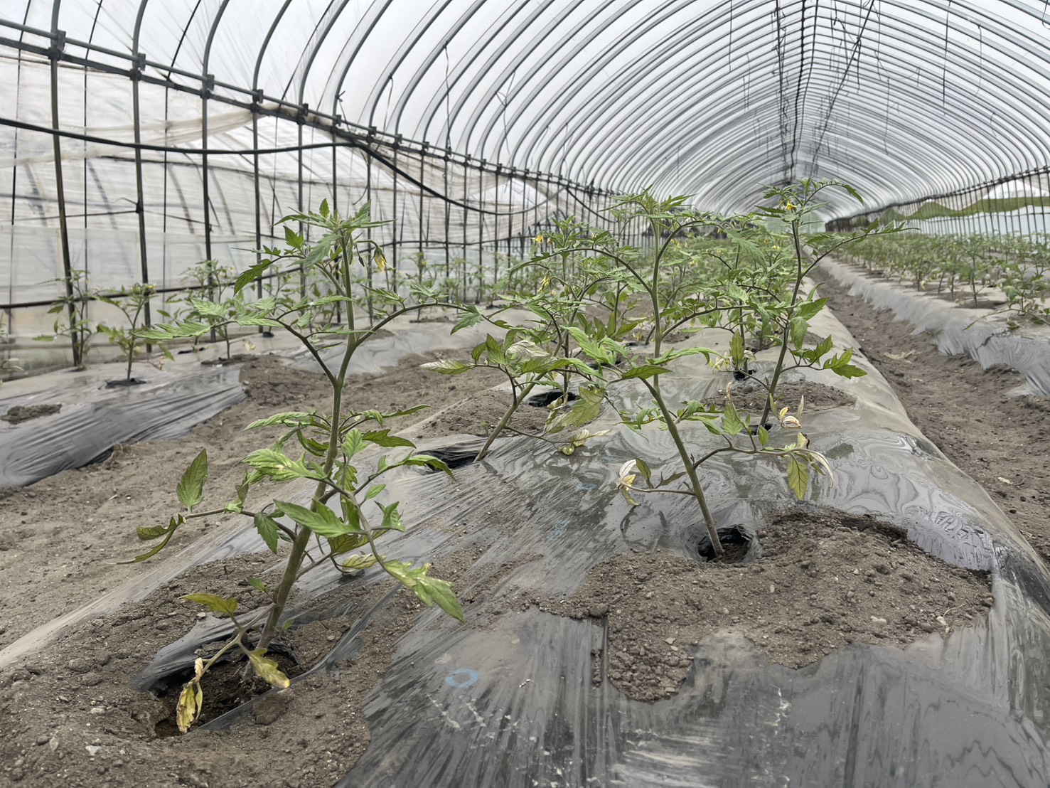 天候に左右される作業ではありますが、「元気でおいしいトマトに育ってほしい」という思いを込めて、一つひとつの苗と向き合いながら作業を進めています。
